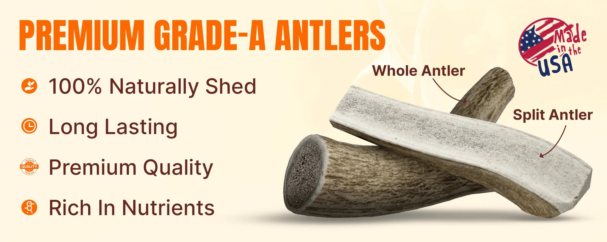 Each antler is carefully inspected for quality, density, and safety. Only premium, Grade-A antlers are selected. - Cleaned & Smoothed for Your Dog's Safety: