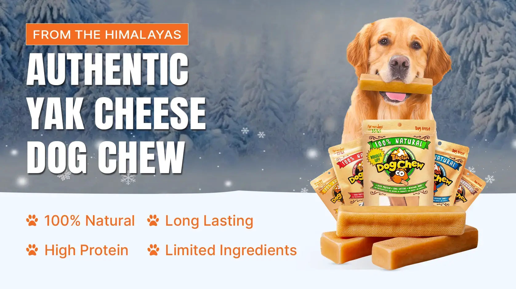 Tibetan yak cheese chews are made from 100% natural ingredients sourced from the Himalayas. Our long-lasting chews are rich in protein, fully digestible, and completely free from additives or preservatives.