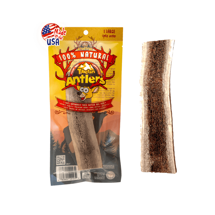 Tibetan elk antlers for dogs are sourced in the US. These naturally shed dog chews are great treats for dogs to enjoy.